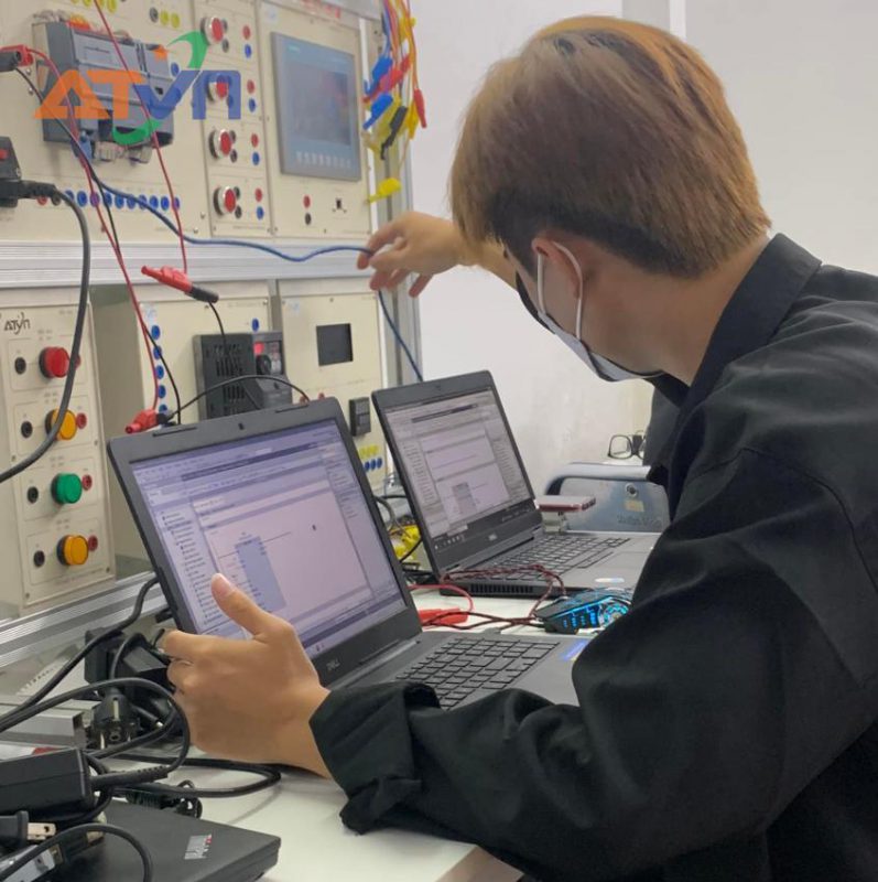ATVN trang bị đầy đủ hệ thống PLC Mitsubishi, Siemens,… Đời mới cùng các mô hình dây chuyền sản xuất tiên tiến, giúp học viên thực hành trực tiếp trên thiết bị thật, không phải mô phỏng.