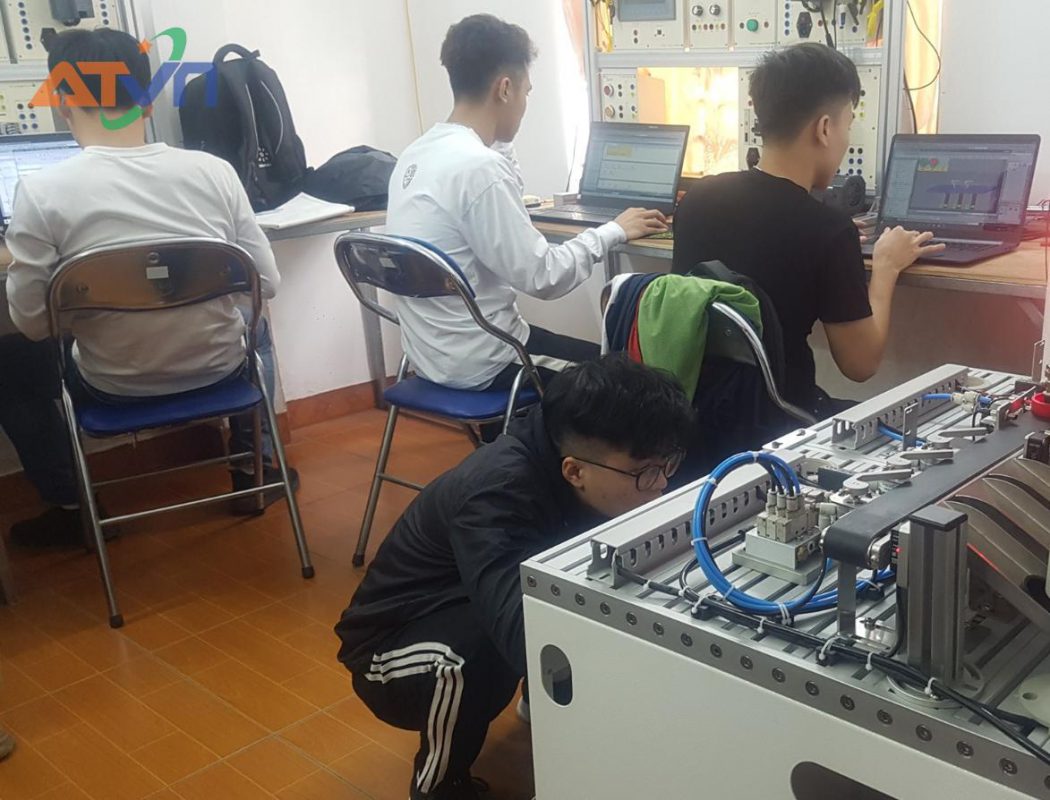 ATVN trang bị đầy đủ hệ thống PLC Mitsubishi, Siemens,… Đời mới cùng các mô hình dây chuyền sản xuất tiên tiến, giúp học viên thực hành trực tiếp trên thiết bị thật, không phải mô phỏng.